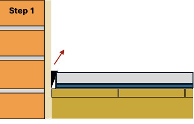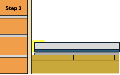 Starting in the far-left hand corner of the room, place the first ScreedBoard with the tongues of the short and long edge facing the walls. Paying attention to the direction of installation as indicted on the board surface. There is no need to remove the tongues.