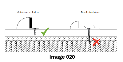 Any mechanical fixings penetrating the floor treatment may result in acoustic failure and could puncture the UFH pipework. Ensure all fixing into the ScreedBoard surface penetrates no more than 18mm.