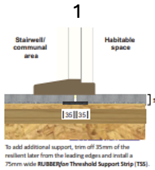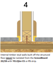 Remove the packing shims from around the floor and install YELOfon FS30 flanking strip to isolate the floor treatment and stop flanking transmission.