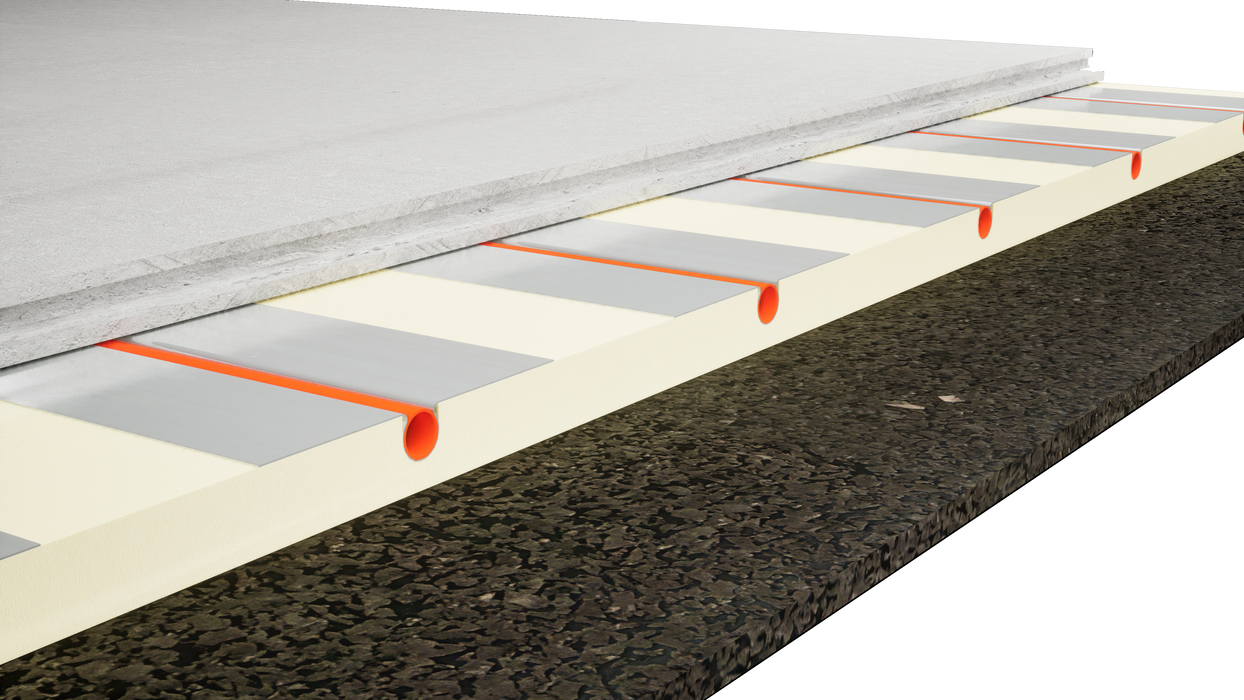 Mojave M1-3 is a high performance UFH & acoustic system for low-profile concrete floors, offering rapid thermal response and ultimate efficiency at low flow temperatures
